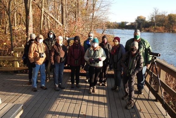 On October 31 Chuck Anderson led an ABAS field trip to Celery Bog Nature Area in West Lafayette. Fourteen birders enjoyed a clear, cool, crisp day. It was 32 degrees at the start. We began birding at a viewing platform and were able to spot and ID 11 duck species highlighted by Redhead and Northern Pintail. Also in view were 14 Tundra Swans, 1 Trumpeter Swan, 3 White-fronted Geese, and 2 Bald Eagles. The group was then taken by a local birder to an area where they were able to get great looks at a red-morph Eastern Screech Owl. Lastly, we shifted closer to the bridge and got close looks of an Eared Grebe, a life bird for several in the group. In all, it was a wonderful morning of birding.