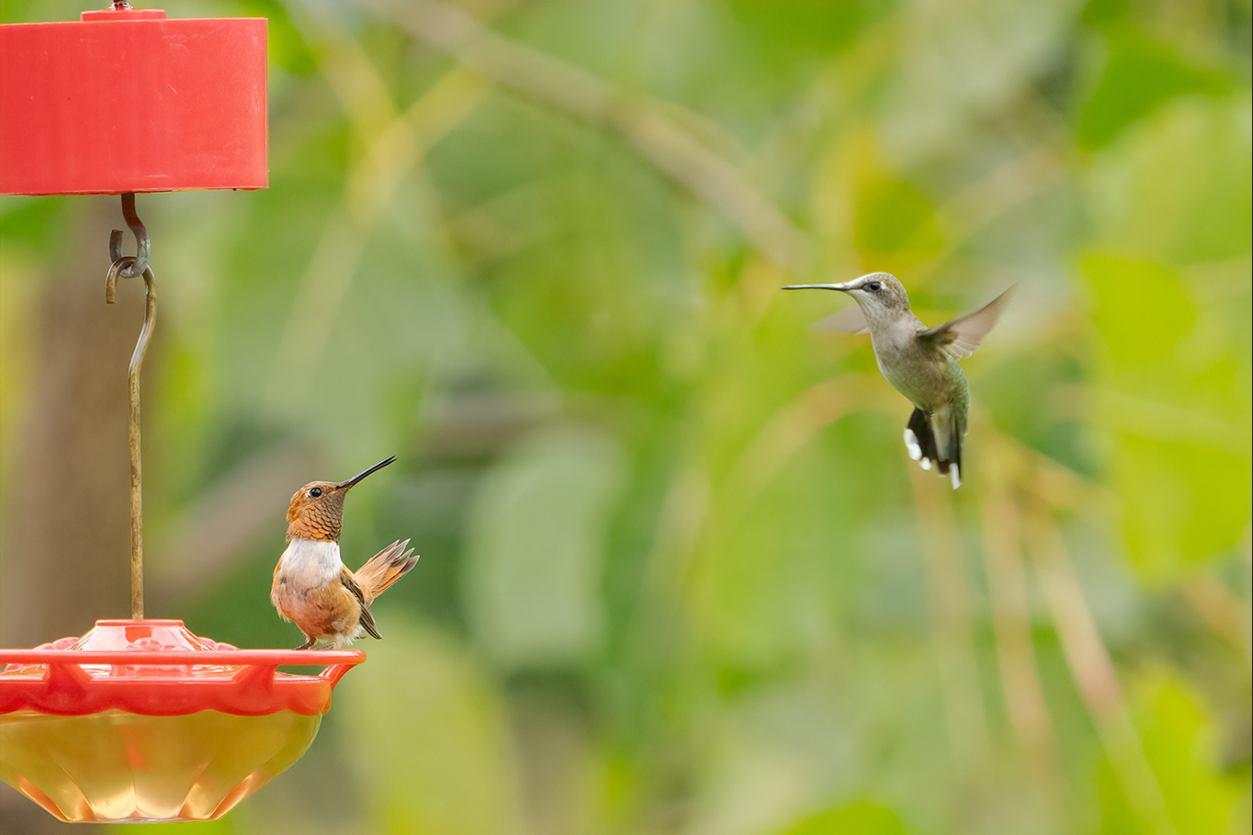 I assume that the Rufous Hummingbird was attracted by the abundant insect life and nectar-producing plants in our yard. I hope that he gains the necessary body weight to complete his migration, though as of this writing, he is still visiting, along with numerous hatch-year Ruby-throated Hummingbirds.