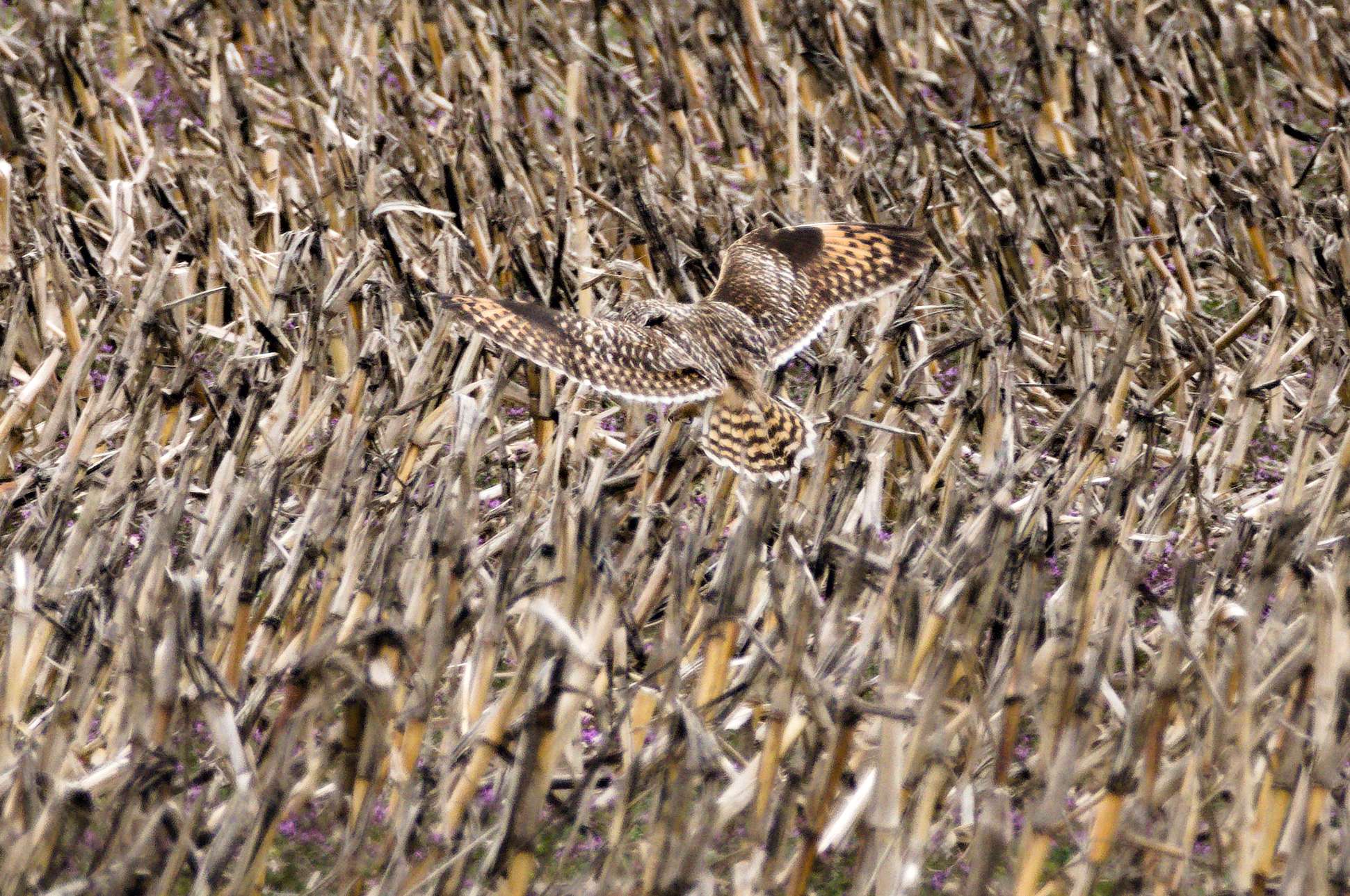 50 yards from the second location, a pair of Short-eared Owls flew across one of the cars, landed in the corn stubbles and disappeared. The second spot was also successful at netting us the desired Smith’s Longspur in several flocks that rattled as they rose from the fields and landed in another location only to disappear. The group also had good looks at Vesper and Savannah Sparrows in this area.