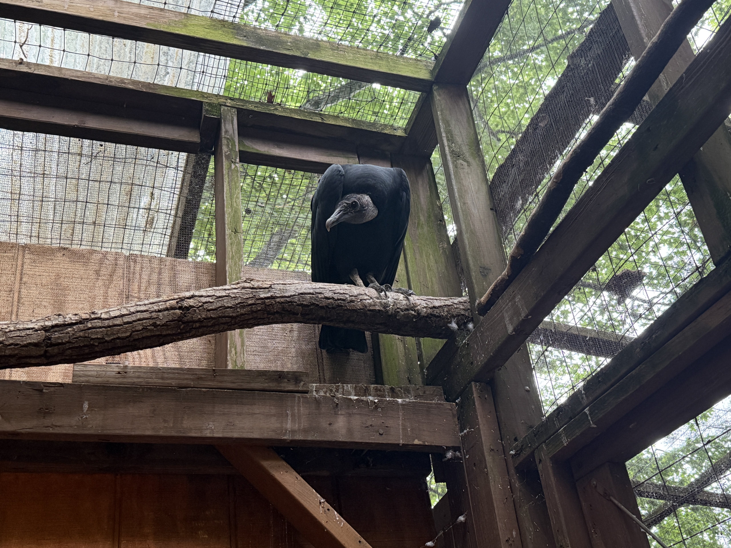Black Vultures (and vultures in general) have a bad rap, and it is part of our mission to change that. If you’ve ever seen Matilda the Turkey Vulture at the OC watching hikers from her perch, sunning her wings, taking a bath, or doing long flights her aviary, you know what I mean! She has changed the hearts of many, converting vulture-haters to vulture-admirers, and made many friends. I am sure Matilda knows so many secrets from park visitors confiding in her. We LOVE vultures, and we think everyone else should too! Beaker was deeply loved at the Indianapolis Zoo as well, but after about three years, they decided that it just wasn’t the right fit for him. Beaker wants a quieter environment with fewer trainers and more one-on-one interaction, which is exactly what we plan to give him.