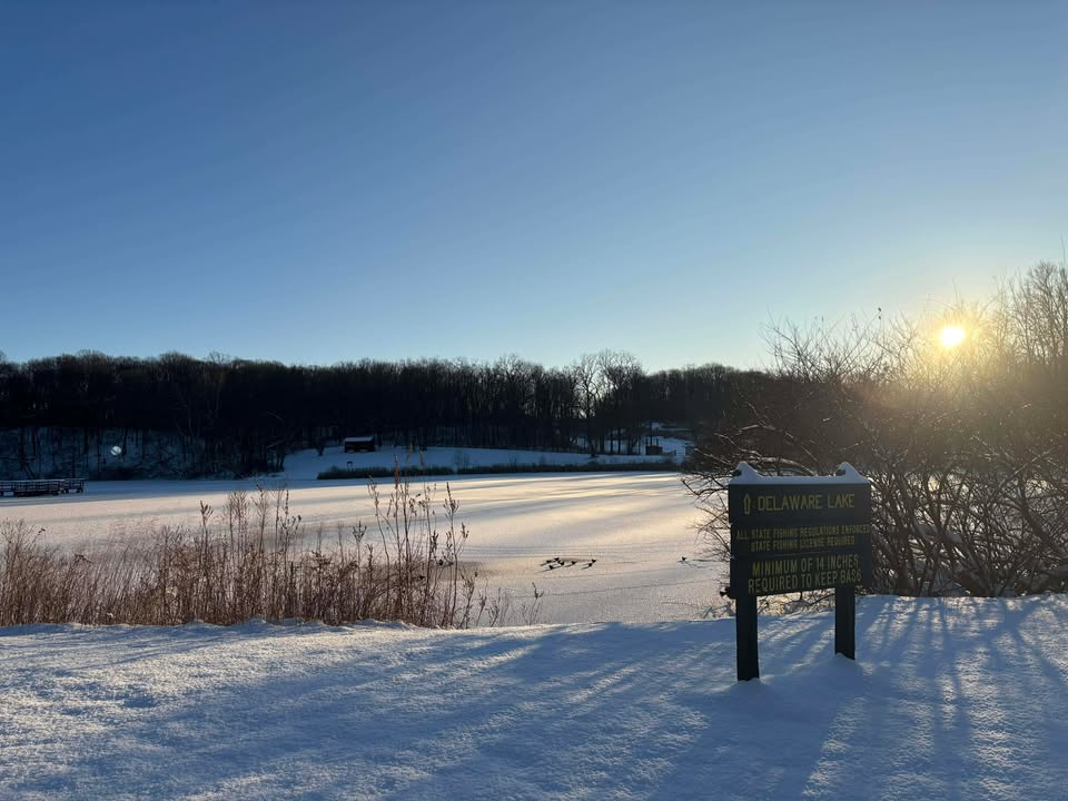 Through the seasons, birds of many varieties can be viewed at multiple locations. If you look into the tree line as you enter the park, you might be lucky to get a glimpse of a Barred Owl perched on a tree. Head on over to Delaware Lake to see Great Blue and Green Herons wading near the edge of the water. If you take a stroll down Fall Creek Trail in the spring, you will hear a cacophony of bird songs from neotropical migrants. In the winter, you can get a glimpse of Brown Creepers and various woodpeckers throughout Lawrence Creek Trail.